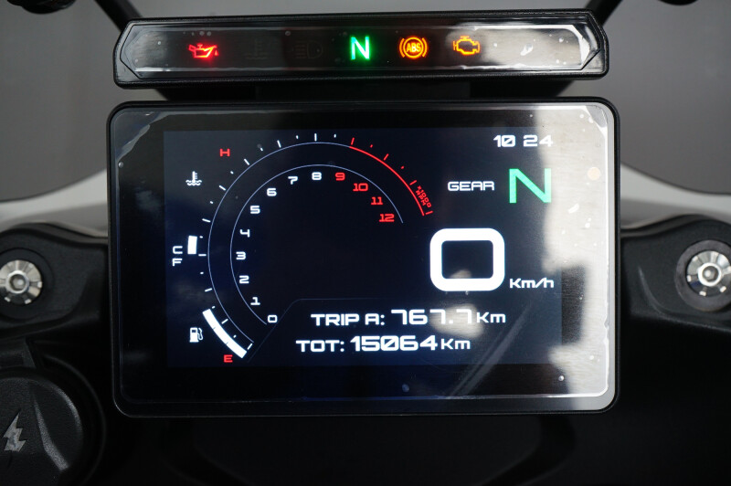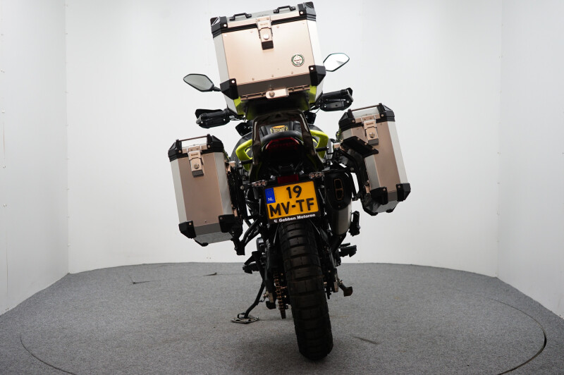 Nette en zeer compleet uitgeruste Benelli TRK 702X. De motor is voorzien van een valbeugeset inclusief mistlampen, skidplate, middenbok, handkappen, handvatverwarming, zadelverwarming, 3-delige aluminium kofferset, tankting, tankpad, rijmodi en cruise controle.