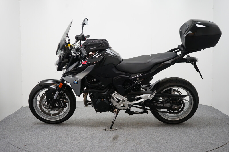 Een in zeer nette staat verkerende BMW F 900 R ABS met cruise control, Traction control, Topkoffer, Whunderlich tanktas, Puig windscherm, Remus uitlaatsysteem, Led verlichting en Quickshifter.