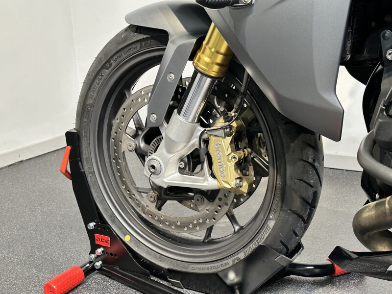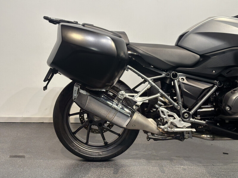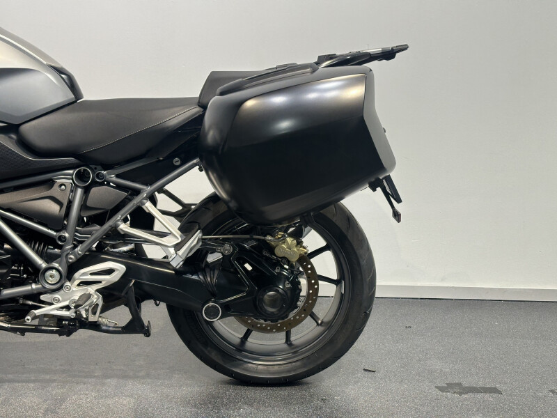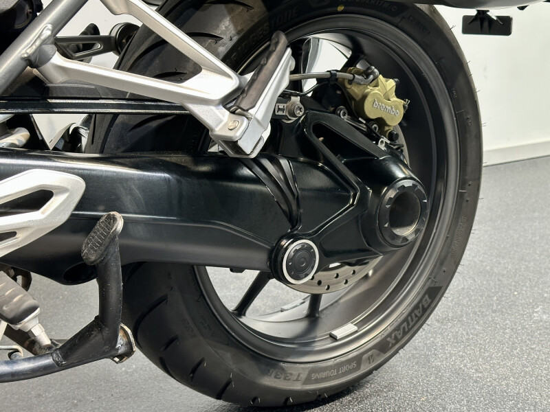 Motor is voorzien van twee zijkoffers een toptas, valbescherming en diverse fabriekopties.