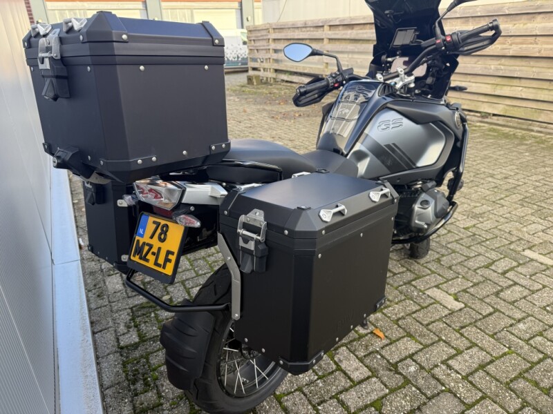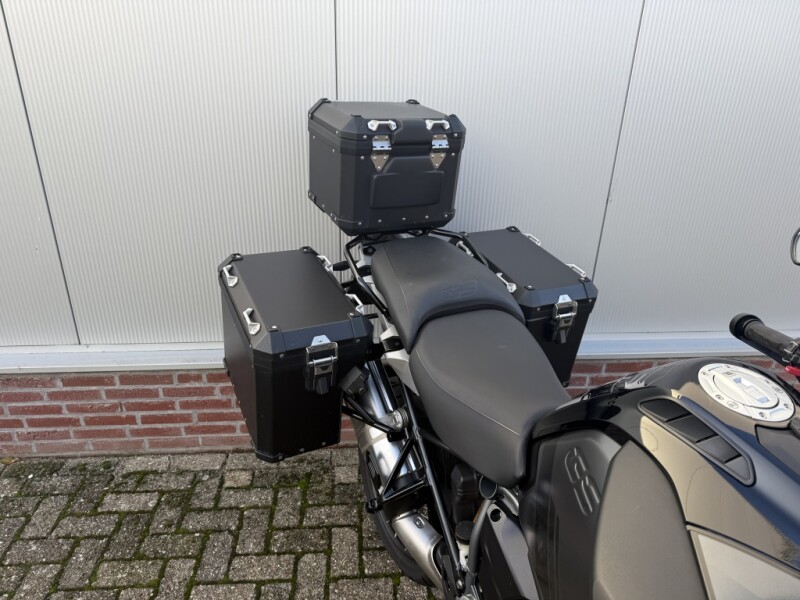 Deze GSA is direct klaar voor vertrek. Hij is uitgerust met een robuuste, zwarte 3-delige aluminium kofferset. Of je nu naar de Noordkaap rijdt of een weekendje weg gaat, je hebt altijd genoeg ruimte.