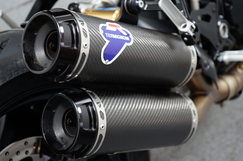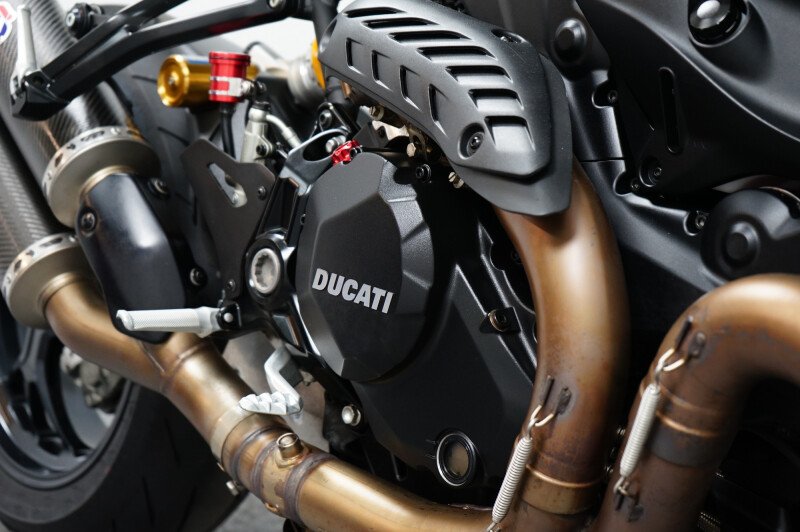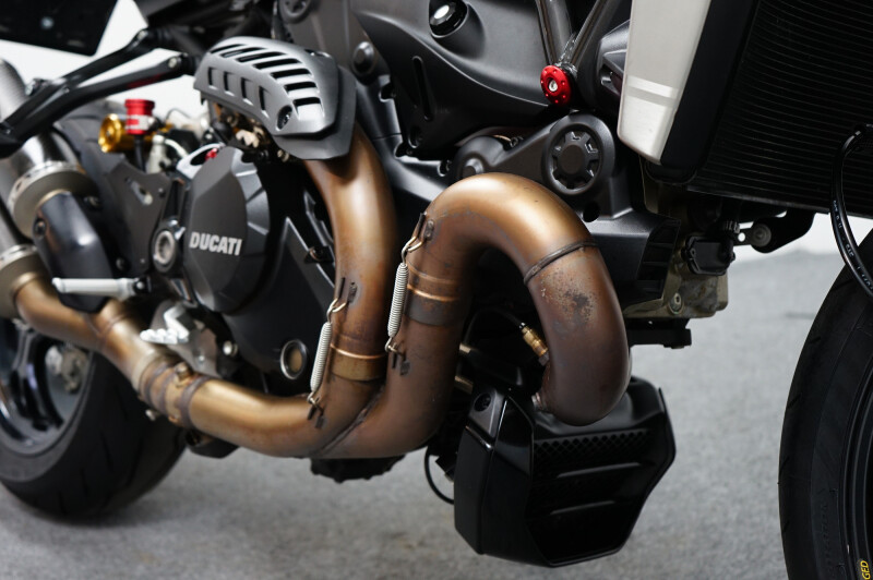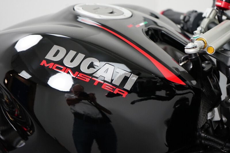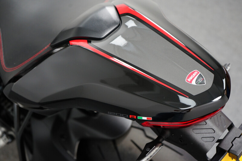 Een in prachtstaat verkerende Ducati Monster 1200 R met Termignoni uitlaatsysteem, Seat Cover, Tankpad, Korte kentekenplaathouder, Led knipperlichten en Stuurdemper.