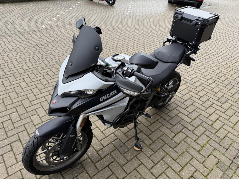 Deze origineel Nederlandse Ducati Multistrada 950 is afkomstig van de 2de eigenaar, compleet dealeronderhouden en met 5.592 KM nog als nieuw! Hij staat er rijklaar bij( riemen en onderhoud uitgevoerd). verder is deze Ducati voorzien van een paar leuke extra’s zoals een topkoffer, radiateur bescherming, handvat verwarming, donkere kuipruit ( de originele is ook aanwezi) en een Tomtom voorbereiding.