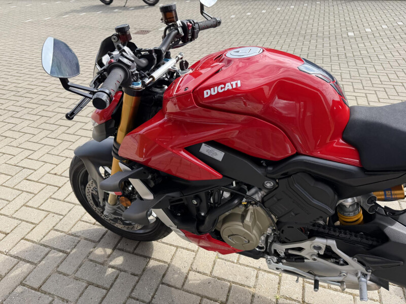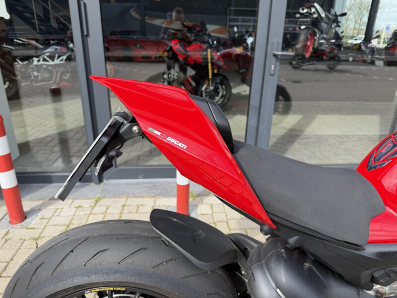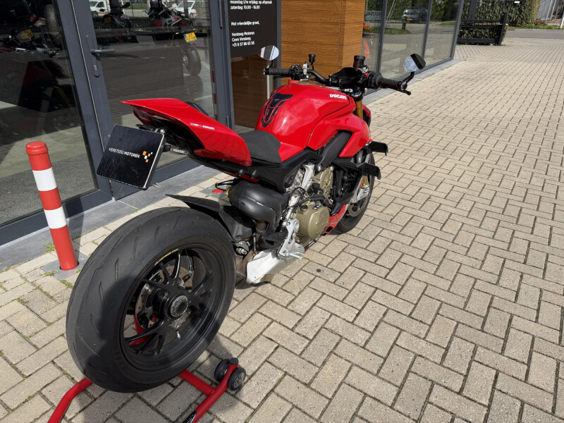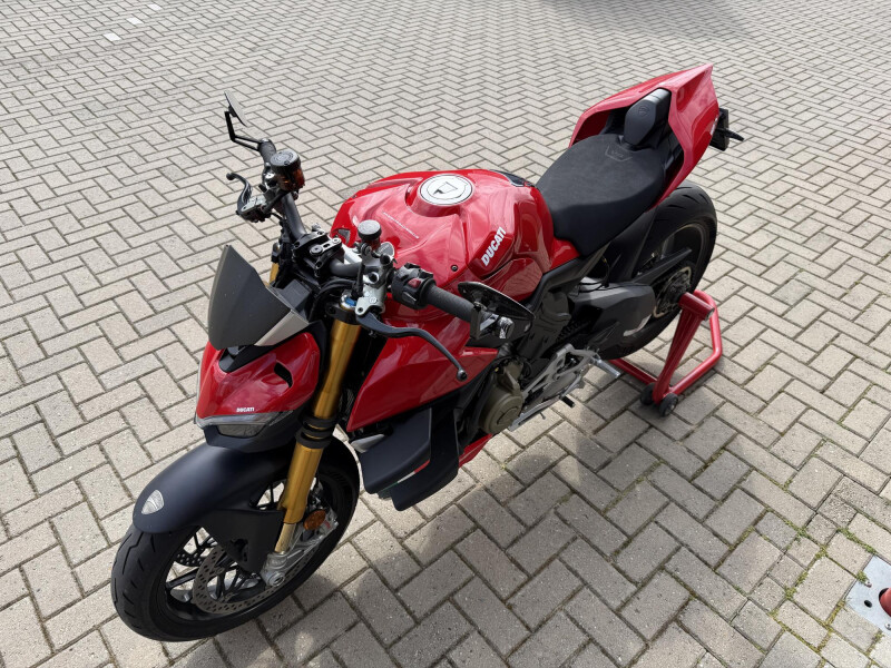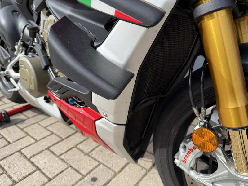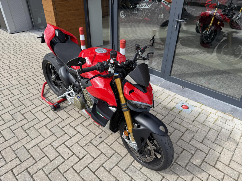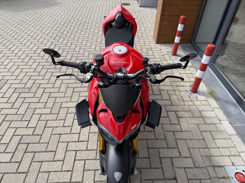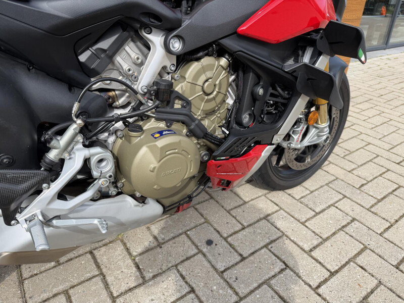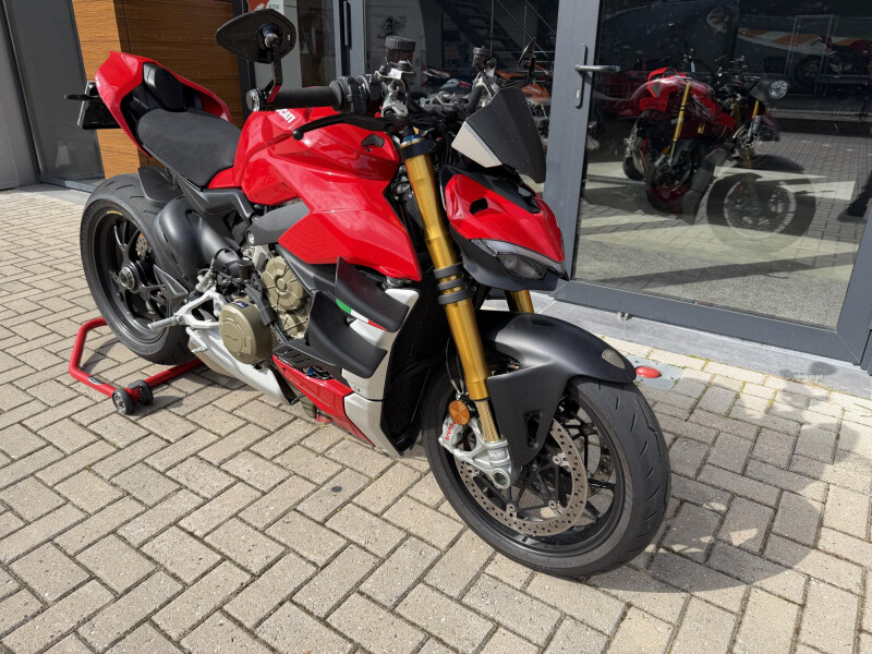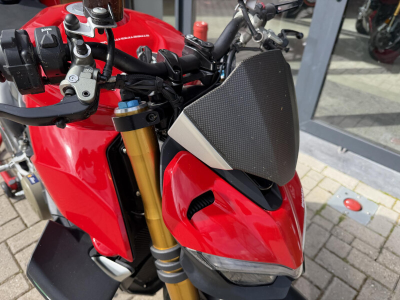 Deze schitternde Ducati Streetfighter V4S is compleet dealeronderhouden en door de vorige eigenaar aangeschaft bij Ducati Affetto. Hij het S voorzien van een monoposto, korte kentekenplaathouder, bar end mirrors, knipperlichten in stuur uiteinden, ducati performance Heelplates, Evotech radiateur beschermers. Staat er rijklaar bij!