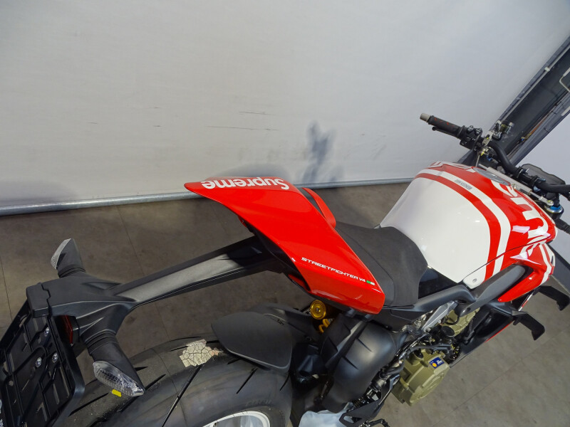 Met deze gelimiteerde editie neemt de Ducati Streetfighter, of Panigale superbike ontdaan van zijn kuip, het krachtige platform over van de V4 S versie met speciale livery. Ontworpen door Supreme in samenwerking met Aldo Drudi, pronkt het met exclusieve details die zowel verfijnd als onconventioneel zijn.