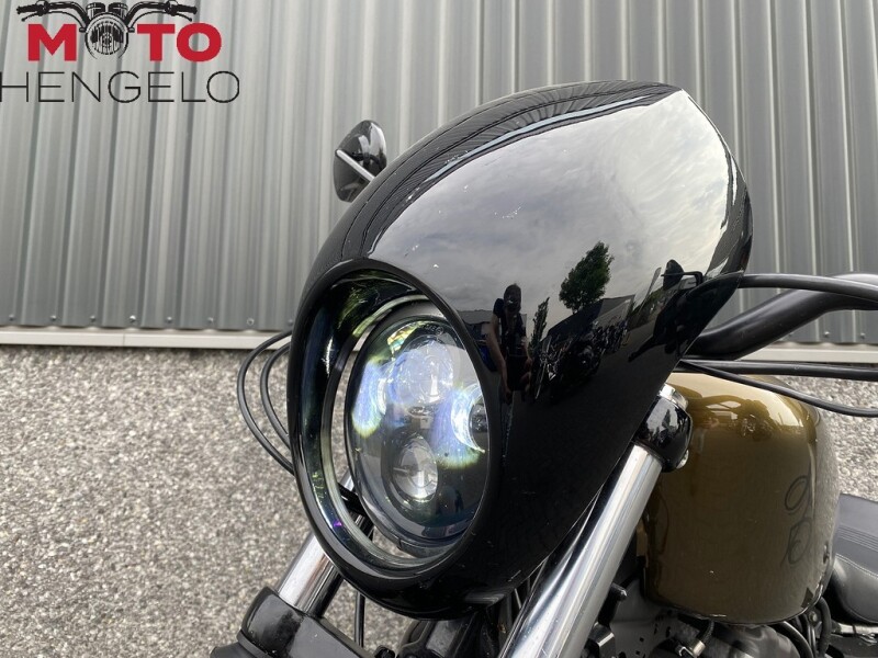 Waar de normale 883 over 38KW beschikt is deze motorfiets met zijn 33KW ook geschikt voor A2 rijbewijs! Deze frisse Sportster is voorzien van Sidemount kentekenplaathouder, Vance Hines Short Shots en een kleine fairing. Meegeleverd word een swing arm bag, zwarte mustache bar en de oem duosteps.