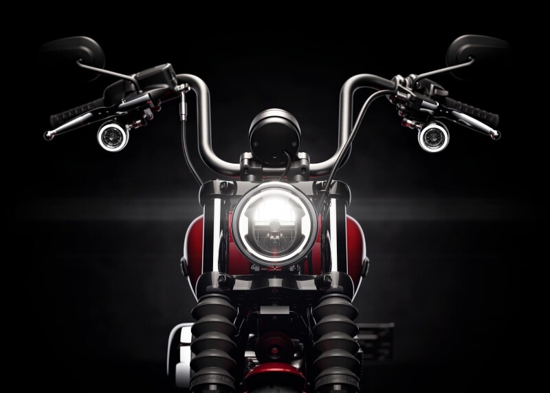 - Bobber-look met mini-apehanger, strak frame en LED-verlichting