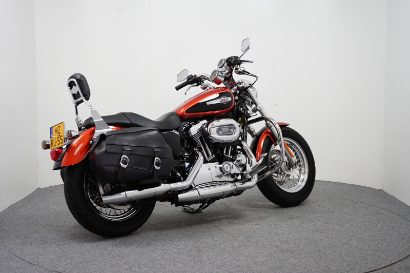 PRACHTIGE HARLEY DAVIDSON XL1200 COSTUM,MET VALBEUGEL,TASSEN SET,EN SISSY BAR.