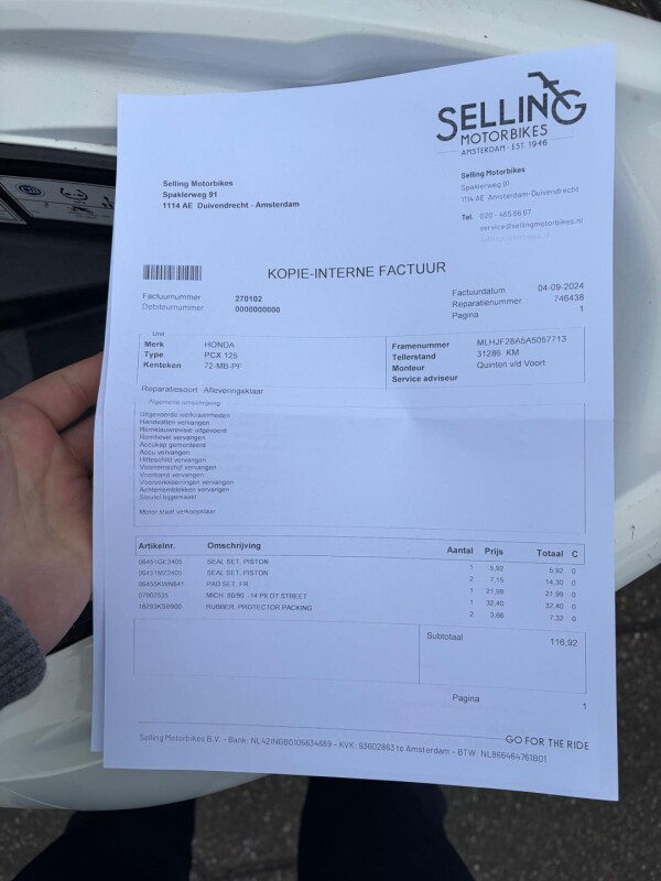 Type: PCX 125 A1 Motor 11KW *Incl grote beurt!
