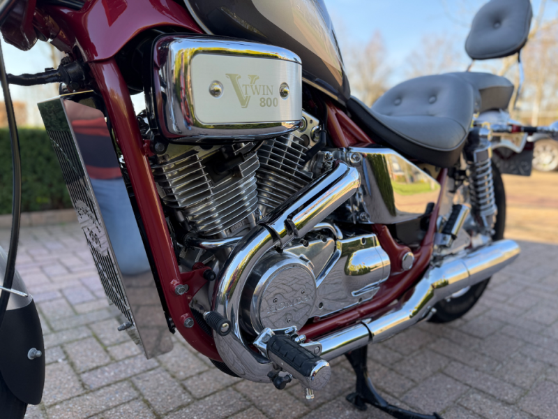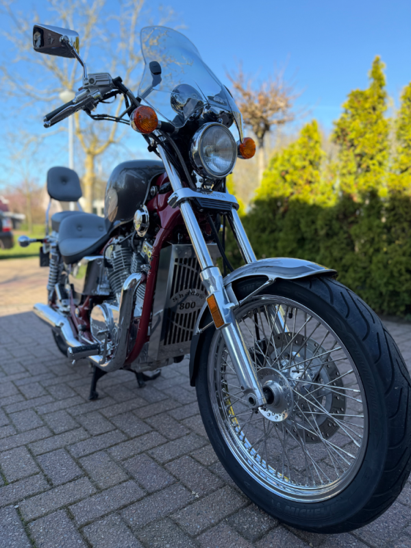 Ik zoek een liefhebber voor deze mooie Honda Shadow VT800 uit 1988. Een klassieke cruiser met karakter, die er netjes bij staat en klaar is voor vele ontspannen kilometers. Algemene indruk: Deze Shadow heeft een prachtige, exclusieve uitstraling in een stijlvolle combinatie van bordeauxrood en zilver in special painting. Het chroomwerk ziet er geweldig uit. Echt een motor waar altijd heelveel aandacht aan is besteed. Specificaties: Merk & model: Honda Shadow VT800 Bouwjaar: 1988 (Kilo)meterstand: 39319 mile Motor: V-twin, vloeistofgekoeld Cilinderinhoud: 800 cc Aandrijving: Cardan (onderhoudsarm) Transmissie: Handgeschakeld Comfortzadel met rugsteun voor passagier Windscherm Veel chroomaccenten (uitlaten, blokdelen, spatborden) Rvs spaakwielen voor klassieke look. Banden zijn zeer goed Dubbele uitlaat met mooie, diepe klank Lage zithoogte → zeer comfortabel Staat: Heeft een onderhoudsbeurt gehad bij Gebben motors. Interesse of vragen? Stuur gerust een bericht voor meer info of een bezichtiging!