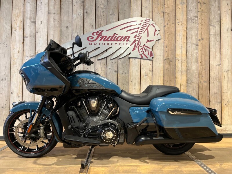 Deze schitterende CHALLENGER DARK HORSE is in de originele kleur Storm Blue / Black Metallic en voorzien van een Dark Smoke windshield .Origineel nog geen 9000 km gelopen.