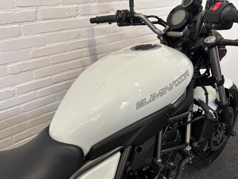 De Eliminator 500 heeft een enkele schijfrem voor en een enkele schijfrem achter, en is voorzien van ABS. Dat helpt om wielblokkering te voorkomen bij remmen op wisselende grip. Qua vering wordt een telescopische voorvork gecombineerd met twin shocks achter, wat goed past bij een cruiser-achtige zit en een ontspannen rijgedrag. Ook praktisch: de Assist & Slipper Clutch is bedoeld om de bediening lichter te maken en het achterwiel rustiger te houden bij stevig terugschakelen. Controleer bij bezichtiging of de remhendel en het pedaal strak aanvoelen en of er geen storingslampjes blijven branden.