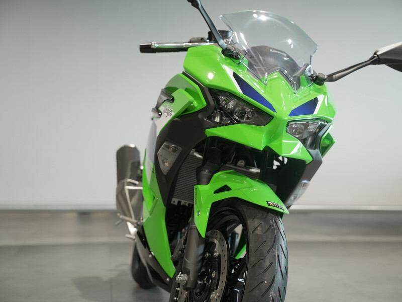 Het gezicht van de Ninja 500 wordt gekenmerkt door twee nieuw ontworpen compacte koplampen. Onder hen steken twee spoilers naar voren en completeren ze de opvallende uitstraling. KIPASS (Kawasaki's Intelligent Proximity Activation Start System) is een master key systeem dat op afstand de hoofdschakelaar en het stuurslot van de motorfiets activeert. Zadels met dikke bekleding en low-rebound urethaan dragen bij aan superieur rijcomfort. Het grote volume carrosserie van de Ninja 500 biedt ook uitstekende windbescherming, wat verder bijdraagt aan het rijcomfort.