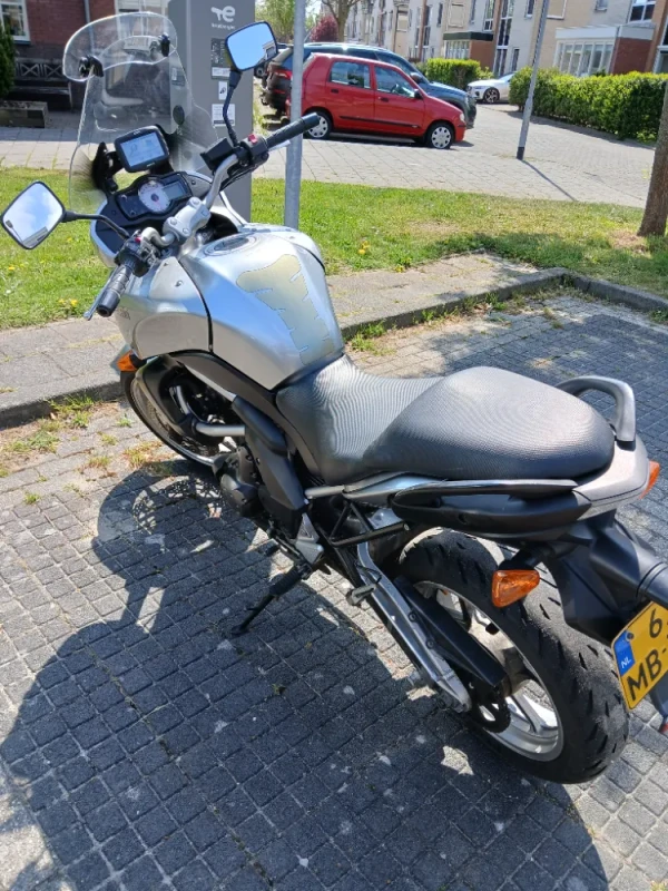 Bouwjaar 2007 65000 km Al het kuipwerk is heel en netjes. deze motor heeft abs. 35kw is mogelijk.Ook de slijtdelen zijn in zeer goede staat, goede banden, nieuwe remblokken, de ketting is ook top. De motor heeft diverse extra’s een verhoogde ruit met flip up, Garmin navigatie en een versnellingsindicator. Alles werkt naar behoren. De motor heeft bij de vorige eigenaar altijd binnen gestaan, nagenoeg geen roest. € 3150,-