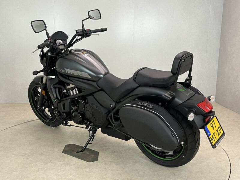 Kawasaki Vulcan S van de eerste eigenaar, uitgerust met originele accessoires: Café Style windscherm, Soft Saddlebag Kit en Passenger Backrest. Fabrieksgarantie tot maart 2028.