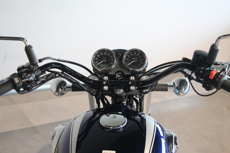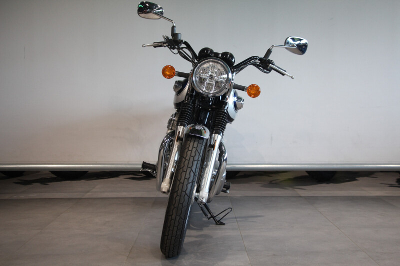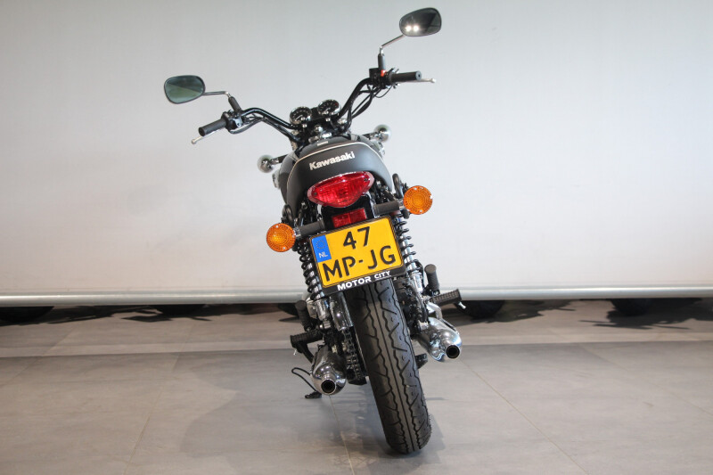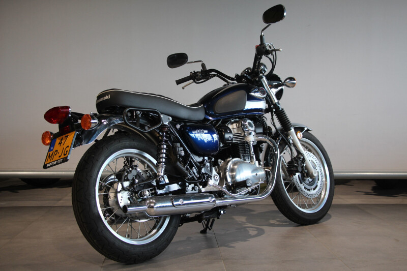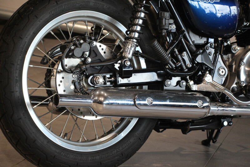 De klassieke dubbele dempers zijn zorgvuldig afgesteld om het karakteristieke geluid van de 360 graden krukasconfiguratie van de Verticale Twin te benadrukken. Een configuratie die is overgenomen van de originele W van Kawasaki.