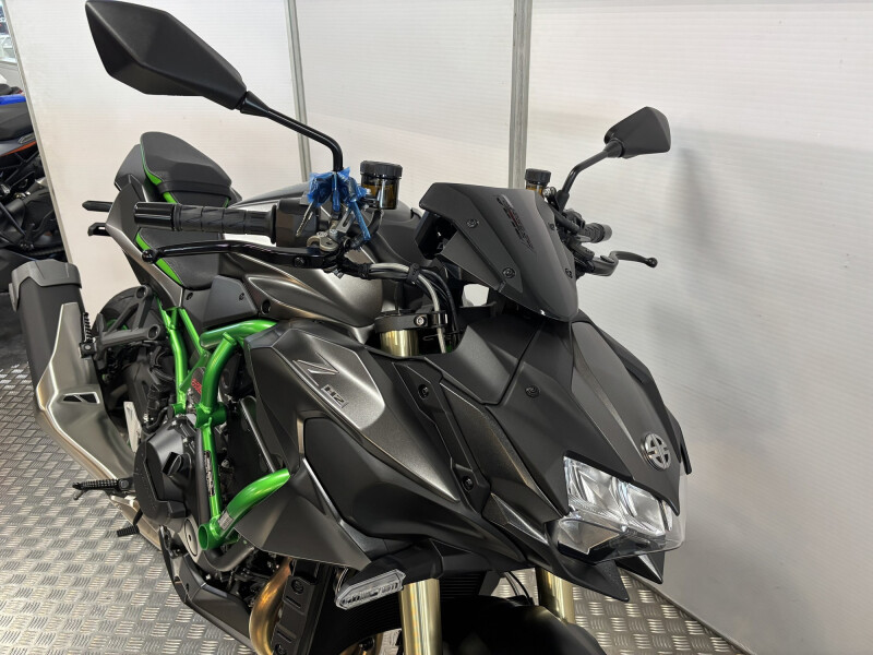 Hét topmodel in de toonaangevende Z-range: de Z H2 SE. Deze Special Edition van Kawasaki’s spectaculaire supercharged naked lift de wegprestaties naar een nieuw niveau dankzij elektronisch gestuurde vering en een state-of-the-art remsysteem. Daarnaast valt het unieke, aansprekende Sugomi-design nog beter op dankzij een nieuwe kleurstelling en aansprekende graphics. Een breed elektronica-pakket, volledige LED-verlichting en een multifunctioneel TFT-kleurendisplay met bluetooth connectiviteit maken deze absolute heerser van de super-naked-klasse helemaal af.