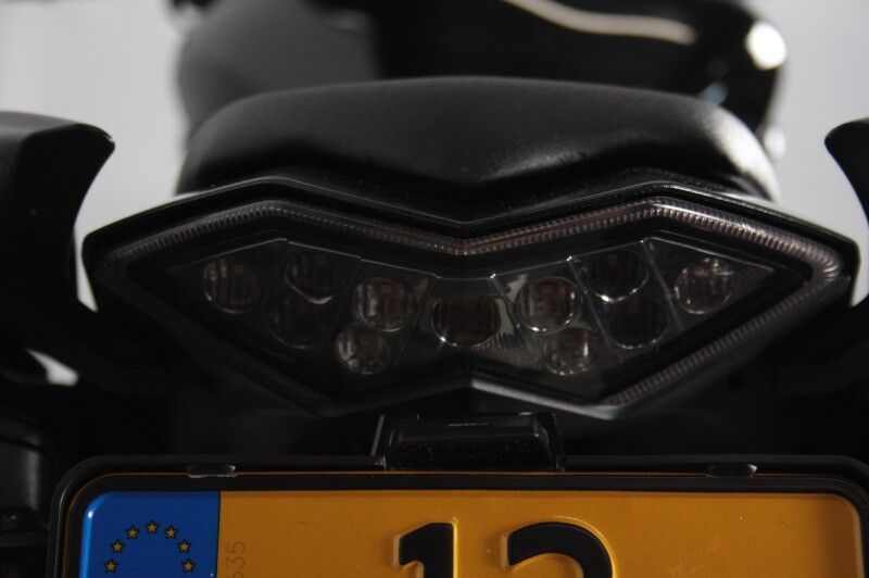 Remmen: dubbele schijfrem vóór met radiale klauwen, enkele schijf achter, ABS