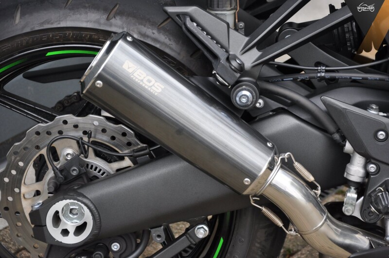 Zoals je ziet, een paar dikke Bos einddempers die een wat voller maar niet aso geluid maken.