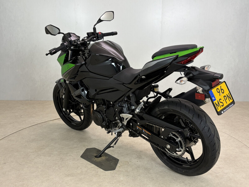 Kawasaki Z400 occasion uit 2023, een lichte en wendbare naked bike met een vermogen van 45 pk en een rijklaargewicht van slechts 167 kg. Hierdoor stuurt de Z400 bijzonder strak en direct, wat hem ideaal maakt voor zowel beginnende als ervaren motorrijders.