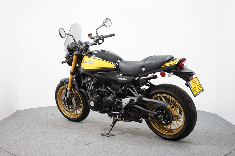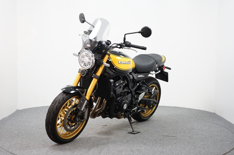 In nieuwstaat verkerende Kawasaki Z900 RS SE voorzien van ABS, middenbok, Ohlins vering, spatbordverlenger (voorzijde) en radiateurbeschermer.