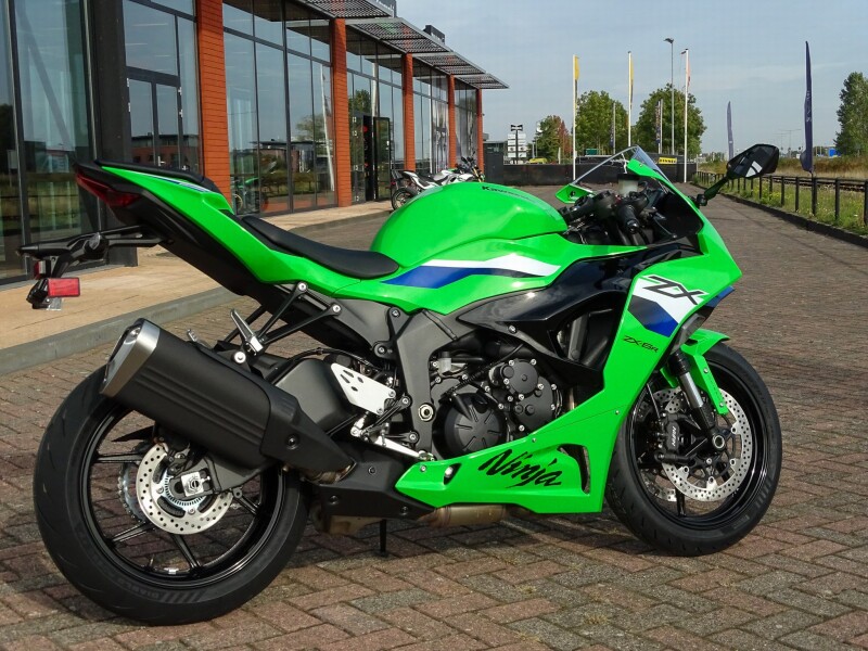Een icoon in de Kawasaki line-up: de Ninja ZX-6R. Deze 636cc vier-in-lijn supersport combineert rijplezier op straat met geweldige circuitprestaties. Uitgerust met Kawasaki Traction Control, Quickshifter en Slipper Clutch zodat jij je volledig kunt concentreren op de volgende apex.
