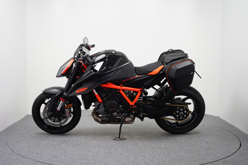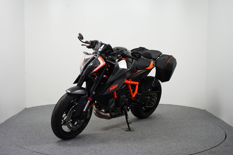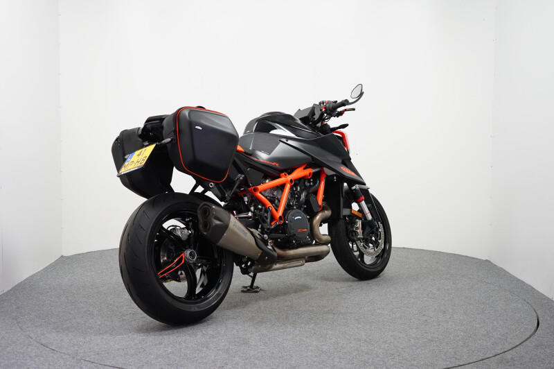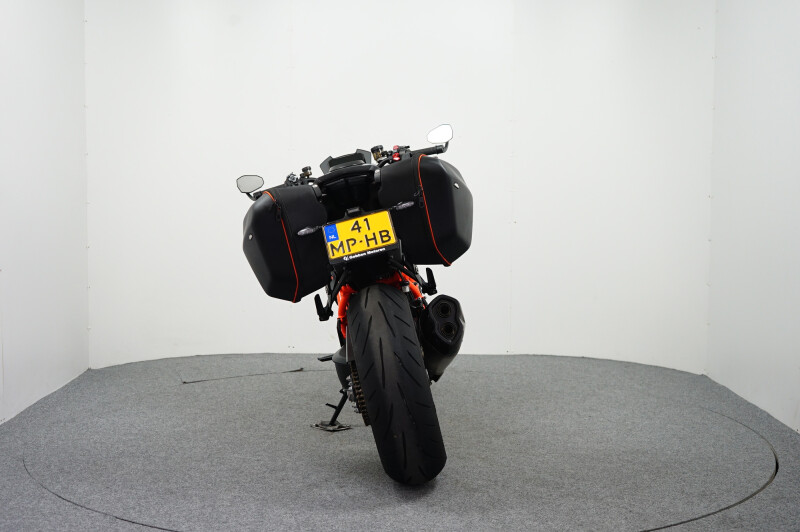 PRACHTIGE KTM SUPER DUKE R MET: KORTE KENTEKENPLAATHOUDER, TASSENSET, COMFORTZADEL, TANKPAD, KNIEPADS, VERSTELBARE HENDELS, BAR-END SPIEGELS, AKRAUITLAATDEMPER EN KTM TECH PACK OPTIE. MOTOR IS NIEUW DOOR ONS GELEVERD!!!