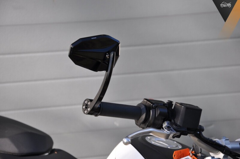 Voorzien van een setje bar-end spiegels en dat is het!