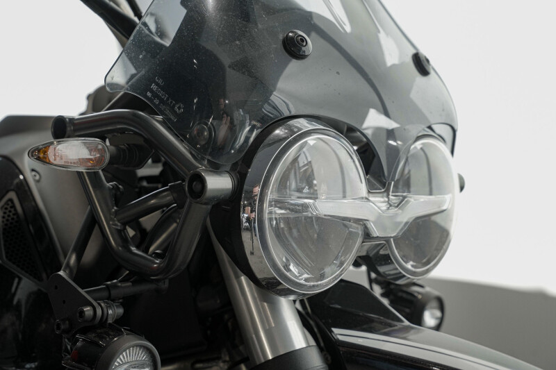 De 853cc V-twin levert 76 pk en staat bekend om zijn soepele vermogensafgifte en herkenbare Moto Guzzi beleving. In combinatie met de cardanaandrijving en het stabiele rijwielgedeelte zorgt dit voor comfortabel en onderhoudsvriendelijk rijden, zowel op lange afstanden als op bochtige wegen.