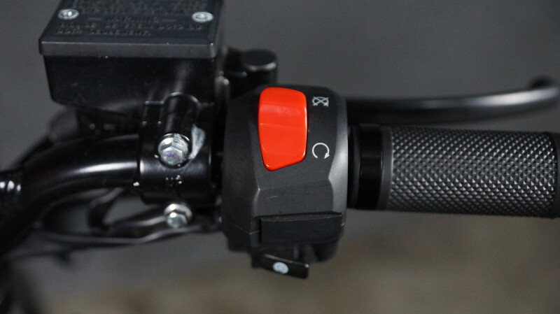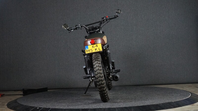 Met z'n stoere noppebanden, maakt deze motorfiets helemaal af