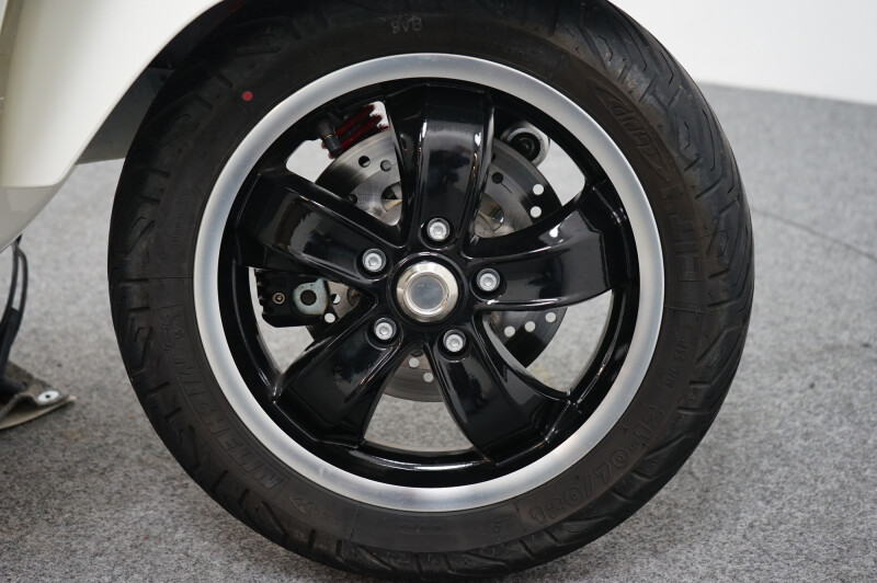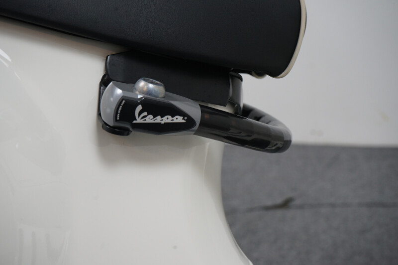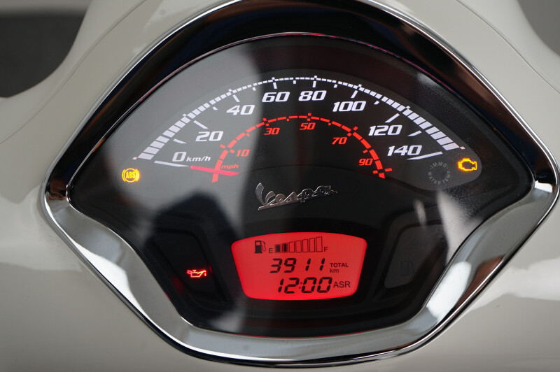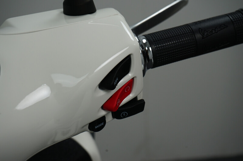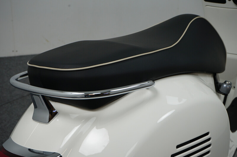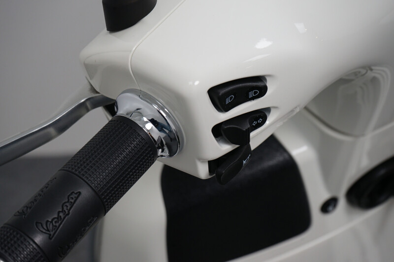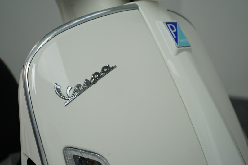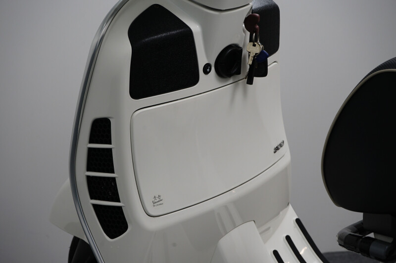 IN NIEUWSTAAT VERKERENDE VESPA GTS 300 HPE IN DE KLEUR WIT.