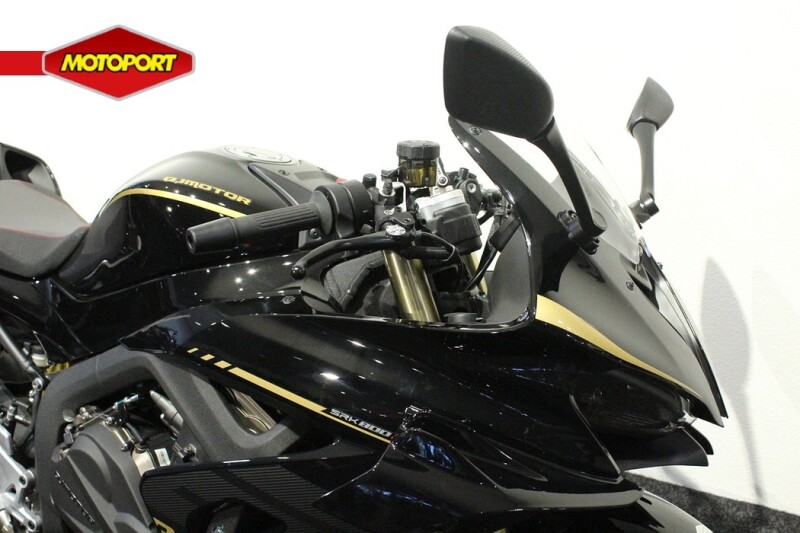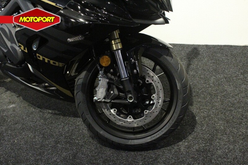Deze SRK 800 RR geeft een ongelooflijk gevoel dankzij de hoogwaardige, instelbare voorvering van Marzocchi en een instelbare schokdemper van Marzocchi achter. Het Brembo-remsysteem biedt een superieure remkracht met dubbele 320 mm schijven voor en een enkele 260 mm schijf achter. Deze functies, gecombineerd met lichtgewicht lichtmetalen velgen, geven een opwindend en zelfverzekerd gevoel. De velgen hebben een afmeting van 120/70 ZR17 voor en 180/55 ZR17 achter. Ze zijn voorzien van Pirelli Angel GT-banden.