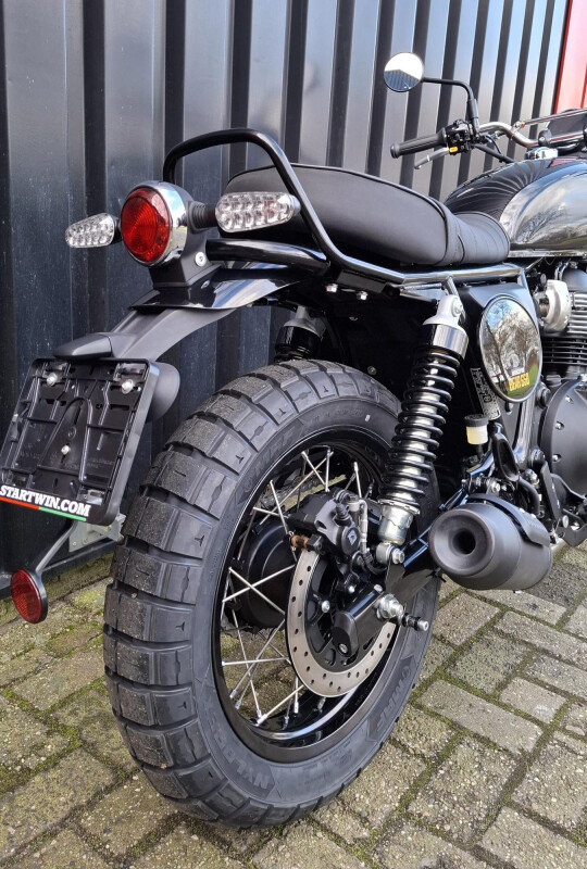 Met een iconisch scrambler-uiterlijk, retrobanden, een gecontoureerd zadel, en een opstaande zadelbeugel biedt de Bear 650 alles wat je zoekt in een scrambler. Verkrijgbaar in drie kleurstellingen – Petrol Green, Golden Shadow, en de Two Four Nine special edition – roept deze motorfiets de nostalgische energie van de Californische woestijn op.