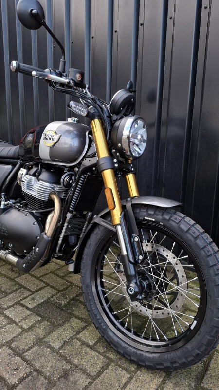 De nieuwe Royal Enfield Bear 650 Golden Shadow! Deze nieuwe Royal is voorzien van de 19 inch voorwiel en 17 inch achterwiel verhouding. Daarnaast uitgerust met digitaal dashboard inclusief Tripper navigatie. Daarnaast voorzien van volledige LED verlichting rondom en upside down Showa voorvork!
