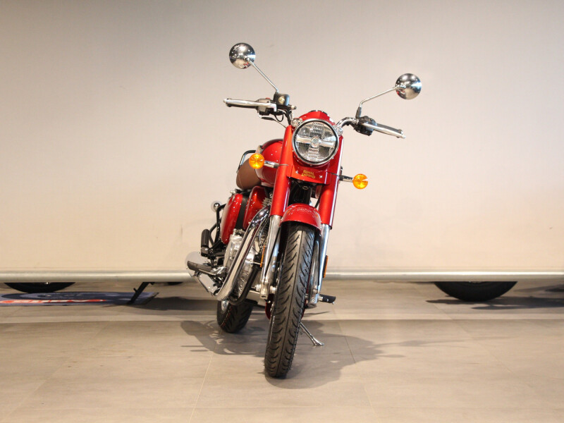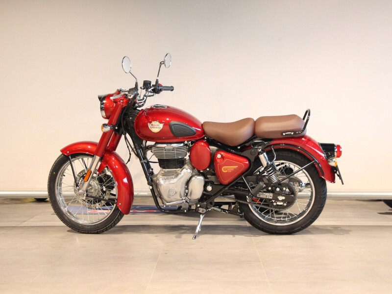 Met de wedergeboorte op het nieuwe J platform belichaamt de nieuwe Classic 350 de tradities en het vakmanschap uit vervlogen tijden. Met het naoorlogse G2 model als inspiratiebron, zag de Classic voor het eerst het levenslicht in 2008. Maar ook nu koestert deze machine nog altijd de tijdloze stijl en vormgeving van weleer met sierlijk ronde spatborden en een druppelvormige tank, kenmerkende klassieke koplamp, tijdloze vormen van de carterdeksels, uiteenlopende kleurstellingen en een onderscheidende diepe drumsolo uit de uitlaatpijp. Alle elementen vallen in volmaakte harmonie samen in een meesterwerk de Royal Enfield Classic. Met zijn elegantie en naadloze afwerking als glanzende illustratie van de uitzonderlijke bouwkwaliteit, straalt de Classic 350 een onovertroffen schoonheid en kwaliteit uit die nooit uit de mode zal raken en altijd up to date blijft.