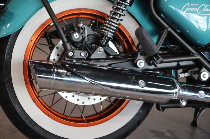 - Tuberless edge laced aluminium spakenwielen met whitewall banden (19inch voor, 16inch achter) klassieke looks gecombineerd met moderne veiligheid en gemakkelijk onderhoud