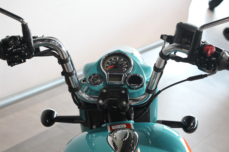 - Mid-ape , mini ape handlebars hoger gepositioneerd dan bij de Classic 350, waardoor een ontspannen rechtop houding ontstaat, zelfs op lange ritten