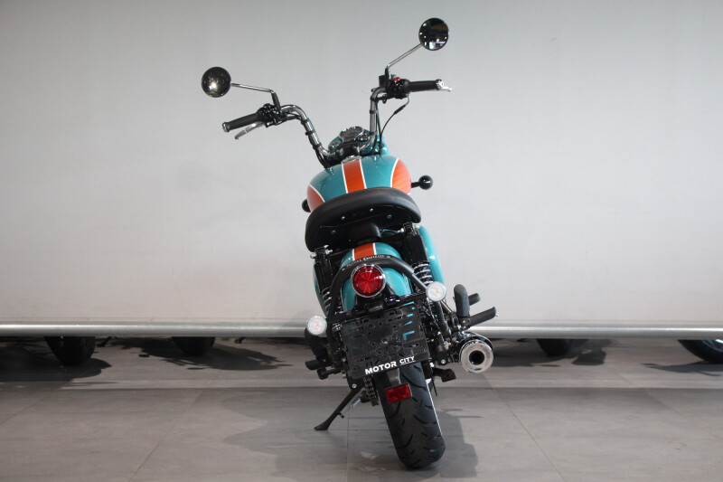 - Retro-bobber design: lage zitting (750 mm), laag frame en forward-set voetsteunen voor een comfortabele, relaxte rijhouding
