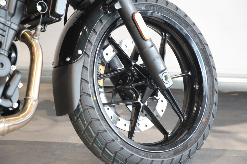 De ergonomie van de Guerrilla 450 is ontworpen om in harmonie met verschillende rijstijlen te werken. Daardoor kun je als bestuurder alles aan, van snelle ritten op open wegen tot technische manoeuvres in scherpe bochten. Door de rijgeometrie blijf je goed rechtop zitten op het lage zadel en de middelhoge voetsteunen. Het dynamische chassis is ontwikkeld voor wendbaarheid en rappe handling. Daardoor blijf de motorfiets stabiel, maar voelt hij licht aan en is hij makkelijk te manoeuvreren. De telescopische voorvork van 43 mm en de monoshock achtervering vergroten het vertrouwen van de rijder zonder aan comfort in te boeten. Door de 17-inch tubeless banden voor en achter en de wielbasis van 1440 mm is de motorfiets uitzonderlijk stabiel en controleerbaar, maar tegelijkertijd erg soepel. Door deze interactieve, responsieve rijdynamica is de Guerrilla 450 ideaal voor drukke stadsstraten en snelle ritten op bochtige wegen. De balans tussen bruikbaarheid en prestaties is ideaal.