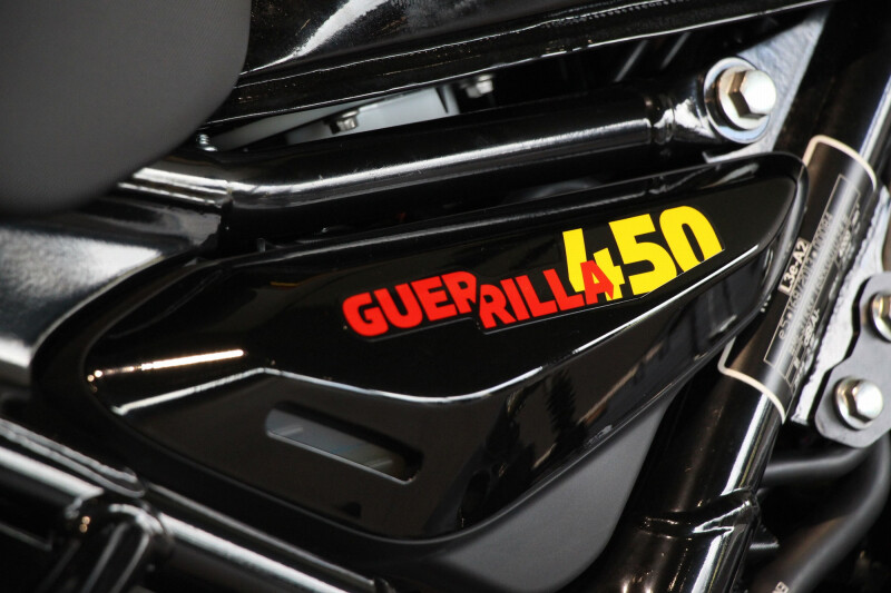 De originele motorfietsaccessoires voor de Guerrilla 450 zijn met zorg vervaardigd en tillen de stijl en functionaliteit van de motorfiets naar een hoger niveau. De accessoires zijn geïnspireerd door de “urban” en “flat track” scene. Ze bestaan onder andere uit grote valbeugels en carterbeschermingen, een extra stijlvol, comfortzadel, een getint windscherm en zwarte tourspiegels die de rijervaring verbeteren. De inspiratie door flat track blijkt duidelijk uit het zadel, de zilveren carterbescherming, de koplampgrille en de hoogglans zwarte kap voor het instrumentenpaneel. Verder zijn er compacte valbeugels en barend spiegels die de rijervaring en esthetiek verbeteren. Ook zijn er veelzijdige bagageopties beschikbaar voor de Guerrilla 450, zoals zachte koffers voor stedelijke avonturen.