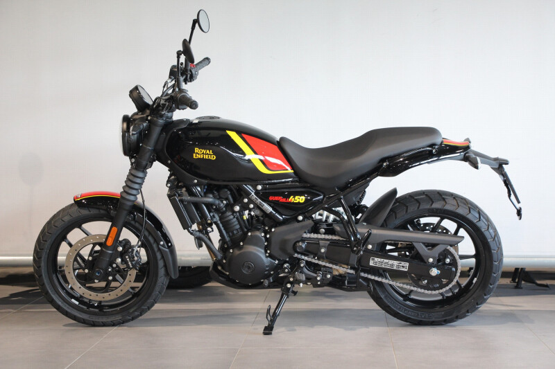 De Guerrilla 450 zorgt voor een dynamische rijervaring die de rijder aan zijn of haar stemming kan aanpassen door middel van het ultrasnel reagerende Engine Management System (EMS) en de elektronische gasklepregeling. Met de rijmodi Performance en Eco past de rijder de gaskleprespons eenvoudig aan de stemming en rijomstandigheden aan. Of je nu behendig door drukke stadsstraten sjeest of vol gas door scherpe bochten en over open wegen scheurt, op deze motorfiets is elke rit plezieriger.