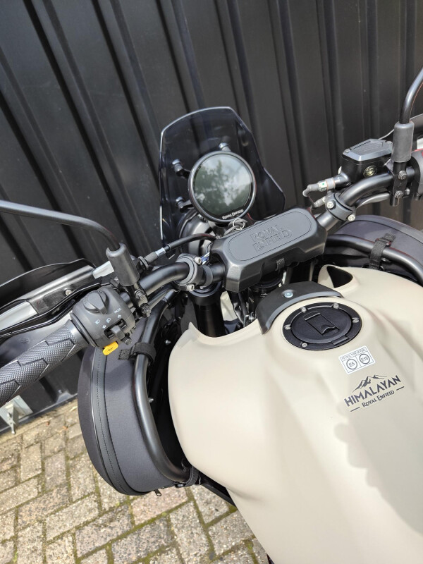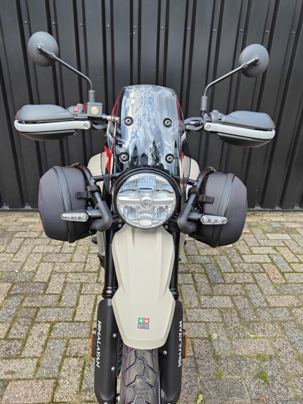 Wij hebben zelf deze nieuwe Himalayan opgebouwd met de originele Royal Enfield Rally accessoire pack Kit.