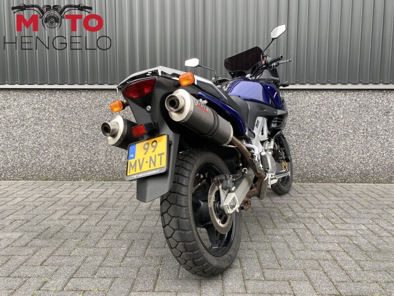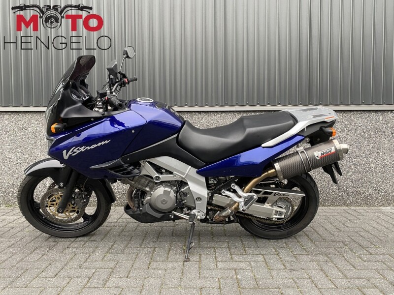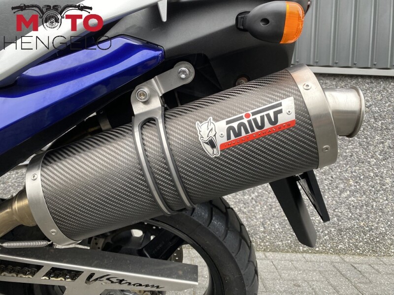 Nette Suzuki DL1000 V-Strom, voorzien van getinte verhoogde ruit, aluminium kettingbeschermer, middenbok, lichtmetalen en verstelbare koppelings- en remhendel, nieuwe spiegels en een MIVV uitlaat voor een mooie sound.