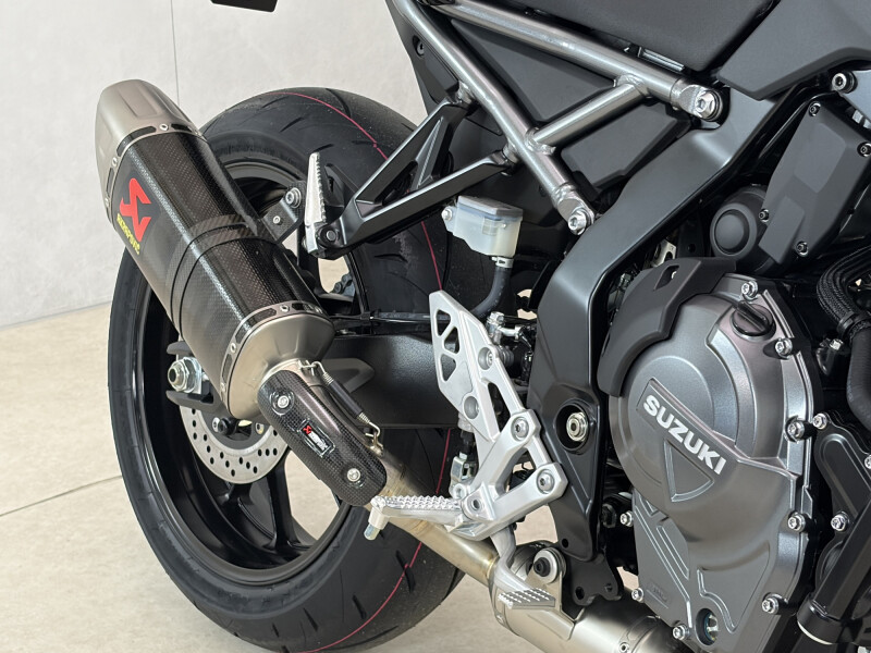 De Suzuki GSX-8S 2026 combineert moderne naked styling met krachtige prestaties en geavanceerde elektronica. Deze uitvoering is extra bijzonder dankzij de gemonteerde Akrapovic Carbon Racing Line Full System uitlaat, die niet alleen zorgt voor een diep, sportief geluid, maar ook bijdraagt aan gewichtsbesparing en een nog directere gasrespons. In combinatie met de aangepaste nummerplaathouder krijgt de GSX-8S een nog strakkere en agressievere uitstraling.