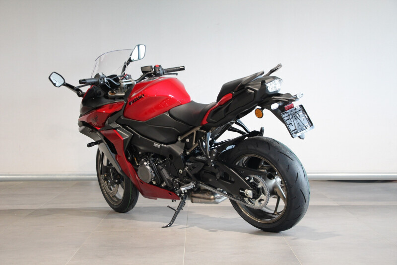 Of je nu van snelle ritten op lange rechte wegen houdt of liever over bochtige wegen stuurt – met of zonder passagier: op de Suzuki GSX-S1000GT maakt het niet uit hoe ver je rijdt, hoe zeer je op smartphone-connectiviteit vertrouwt of hoeveel bagage je meeneemt. Bij de GSX-S1000GT gaat het niet om de bestemming, maar om het plezier van de reis ernaartoe. De Suzuki GSX-S1000GT valt op door een scherp gelijnd en zeer gestroomlijnd front met fraaie, horizontaal geplaatste LED-koplampen en positieverlichting. De vormgeving zorgt tegelijk voor stabiliteit bij hoge snelheden en hoog comfort om lange afstanden moeiteloos vol te houden. Uiteraard is de GT uitgerust met state-of-the-art technologie, zoals cruise control, een bi-directionele quickshifter, drie rijmodi, vijf standen tractiecontrole, Suzuki Clutch Assist, Low RPM Assist, een groot, 6,5-inch fullcolour TFT-scherm en een smartphone-connectiviteitsmodule.