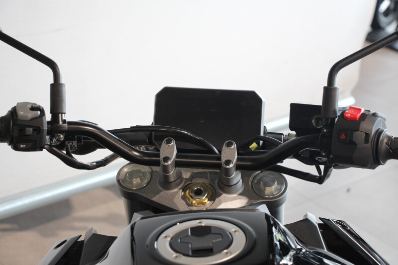 Je kijkt uit op een compacte en sportief gelijnde cockpit waarin je een groot LCD display ziet die je duidelijk en goed afleesbaar informeert over onder meer toerental, snelheid, versnelling, verbruik en resterende actieradius. De LCD-display informeert je ook over de gekozen modus voor de traction control. Er is zelfs een lap timer als knipoog naar het circuit, naar de roots van het energieke en sportieve motorblok.