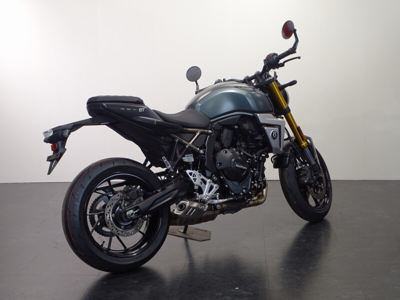 De Suzuki GSX-8T is een opvallende verschijning in het Street-segment. De ronde LED-koplamp, geïnspireerd op Suzuki-motorfietsen uit de jaren 60 en 70, is voorzien van geïntegreerde contourverlichting. Karaktervol design met een moderne twist: de iconische 16,5-liter tank, goudkleurige voorvork en luxe afwerking maken het plaatje compleet: met deze motor val je op.