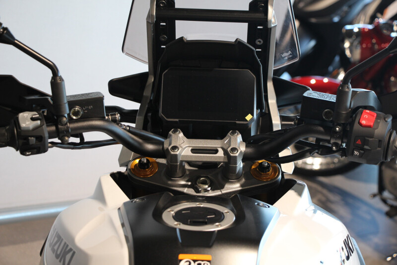 De kwalitatief hoogwaardige display houdt je volledig op de hoogte van alle systemen en instellingen van de V-STROM 1050DE en levert vitale real-time informatie over de status van de motor. De toerenteller fungeert eveneens als schakelindicator en kan (indien gewenst) knipperen wanneer de motor een vooraf ingesteld toerental bereikt.