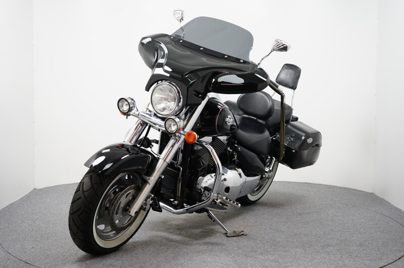 Een in zeer nette staat verkerende Suzuki VL 1500 met nieuwe White Wall banden, Sissy-Bar, Leren tassenset, Highway Hawks stuur verhogers en sportdempers zonder E-keur nummer.