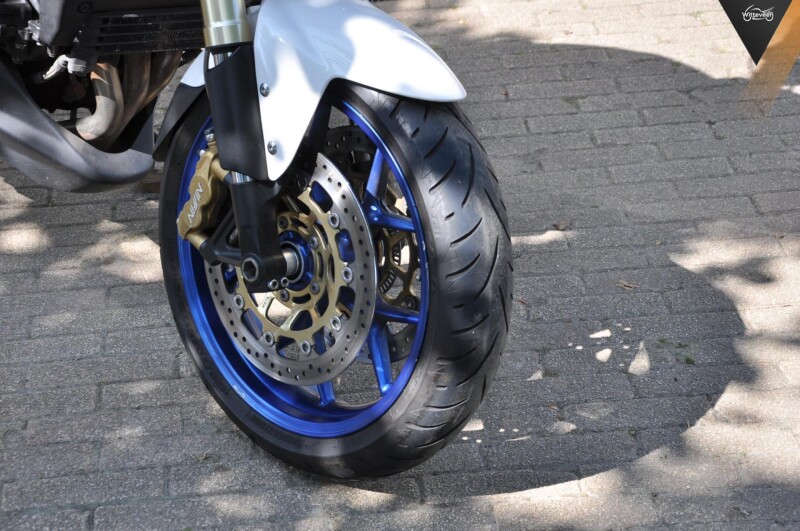 Een heerlijke Triumph Tiger 1050 met ABS in het metallic wit en blauwe wielen, Staat gaaf! (al valt er over smaak niet te twisten)