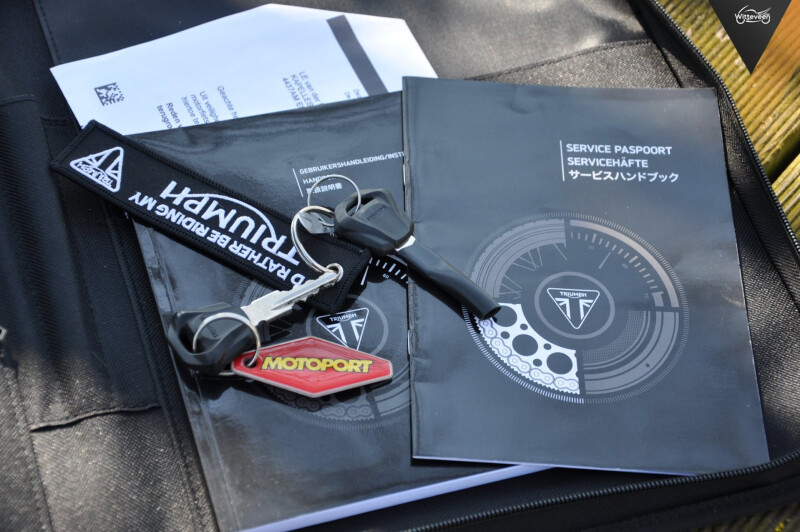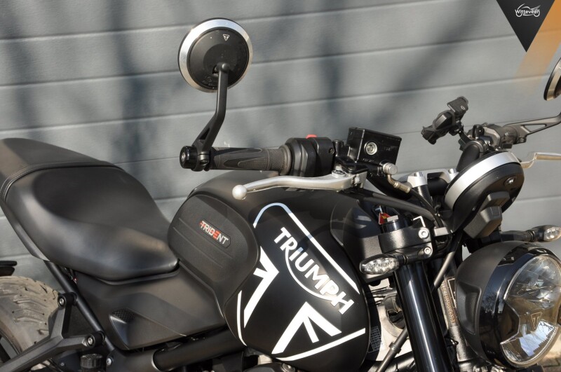 Op dit exemplaar is als extra gemonteerd: handvatverwarming, Bar-end spiegels, quickshifter, Bleutooth connectiviteit. Alles origineel Triumph!